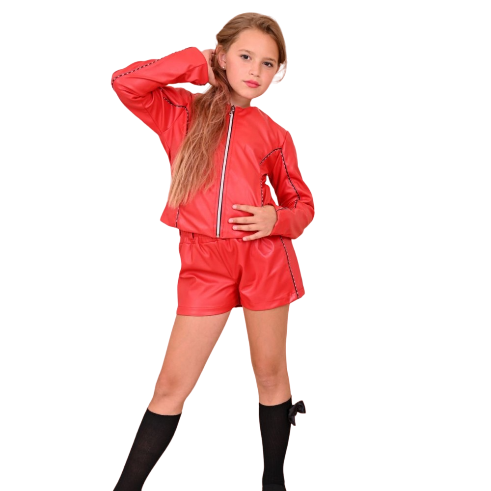 • Елегантно кожено яке с тонка подплата.Цвят червен.