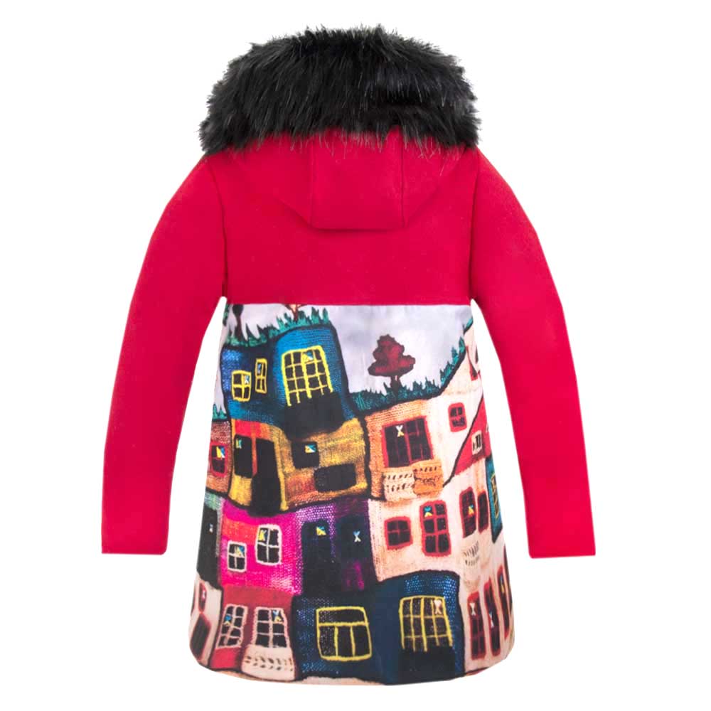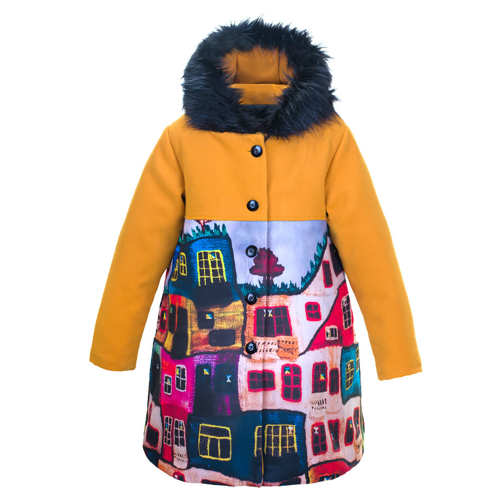 Уникално есенно-зимно палто с декорация на къщата,което предава много уют и топлина.Модерно и стилно.Изработено от леки и дишащи комфортни материи,то осигурява през есенните дни. Със своята класическа кройка и топли цветове,това е перфектно допълнение към вашата есенна колекция в гардероба. Идеално за комбинация с рокля в същия стил.