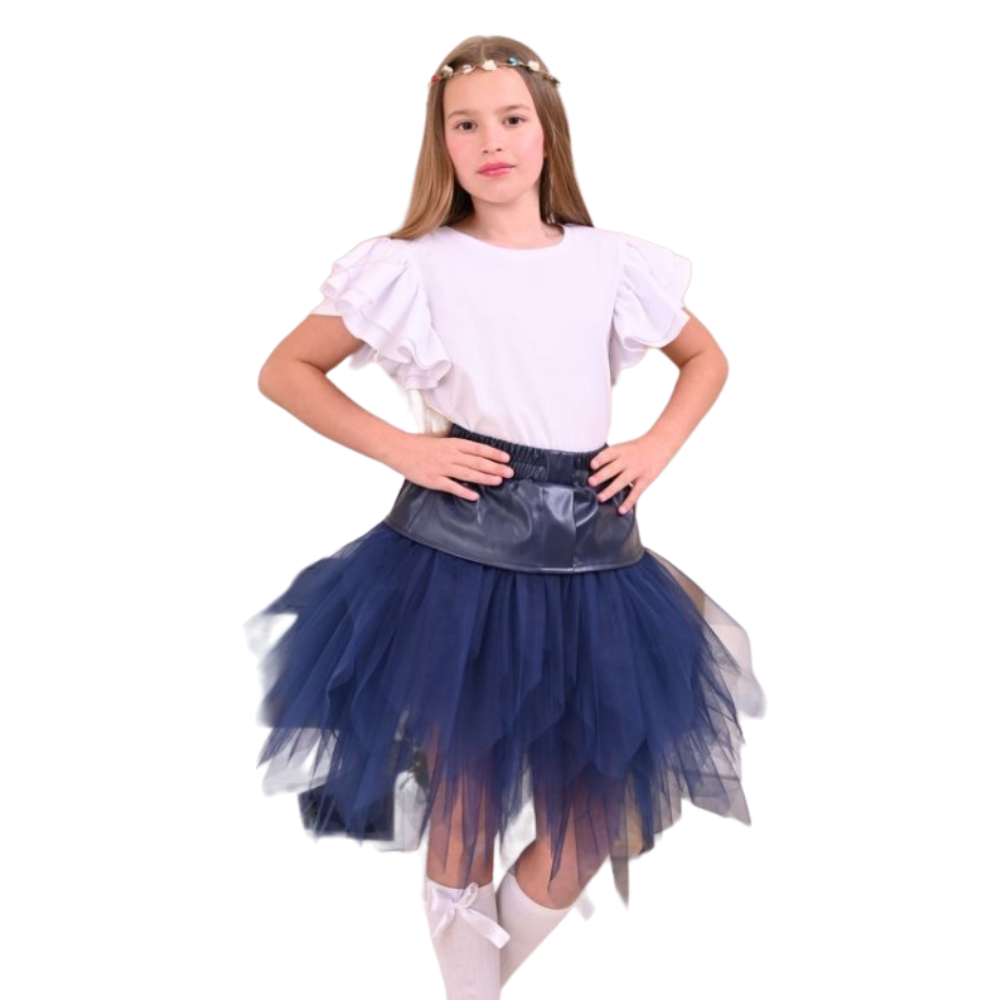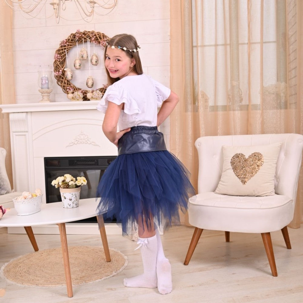 - Уникална пола с кожа,съчетана с много тюл.