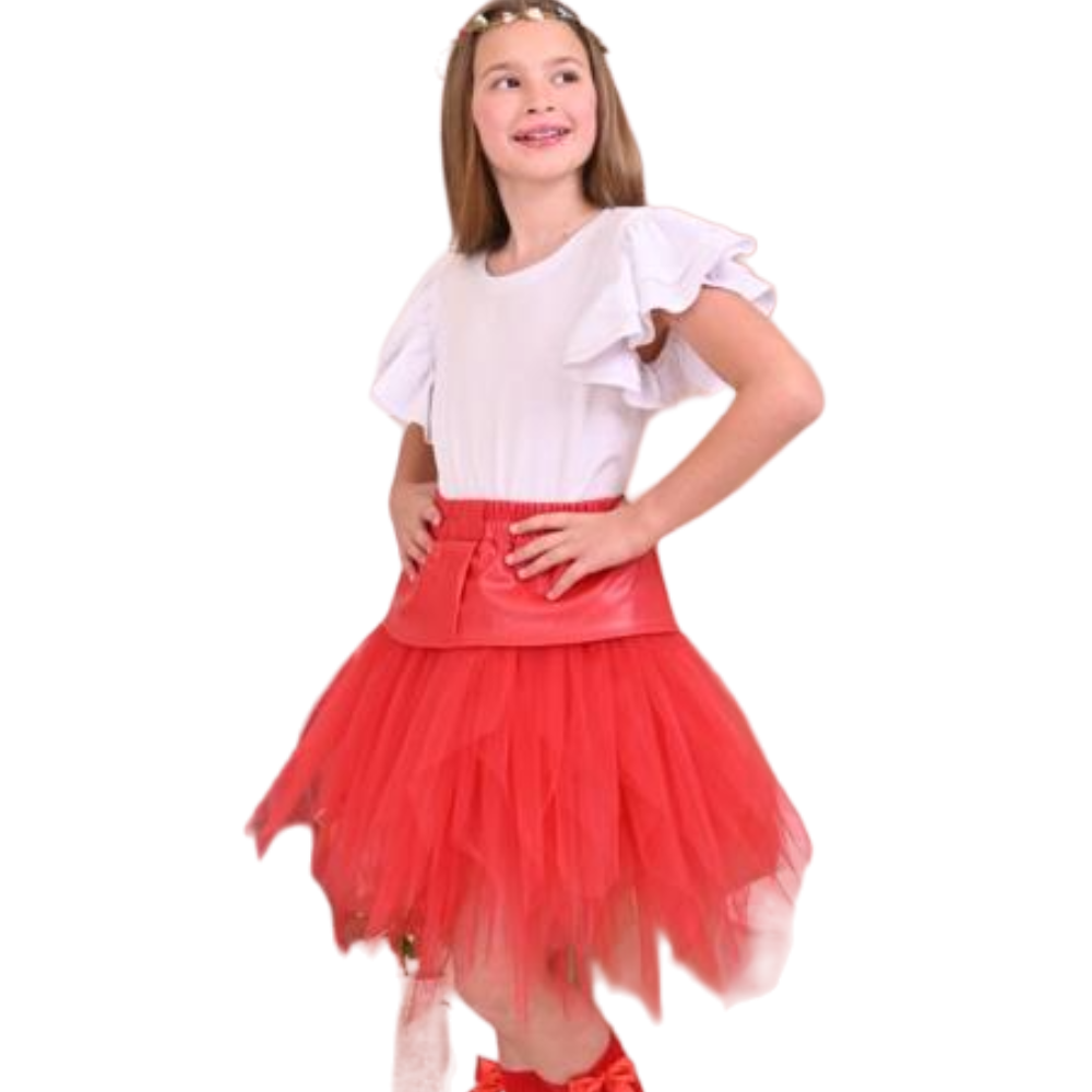 • Уникална пола с кожа,съчетана с много тюл.